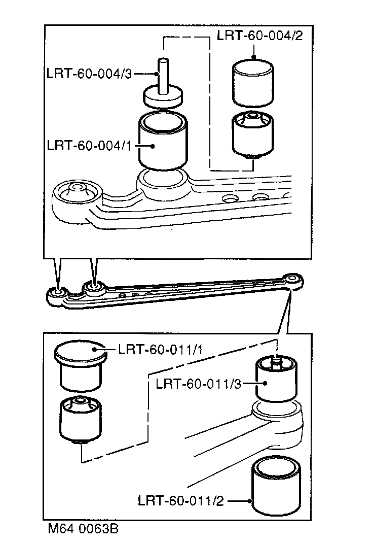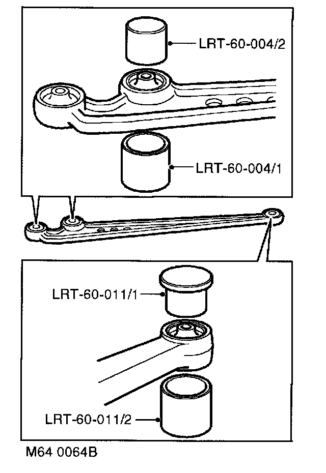 ^ Use LRT-60-011/1 and LRT-60-011/2 to remove bushes at chassis end of radius arm.