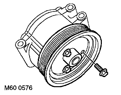 7. Restrain pulley, remove 3 securing bolts and remove pulley from ACE pump.