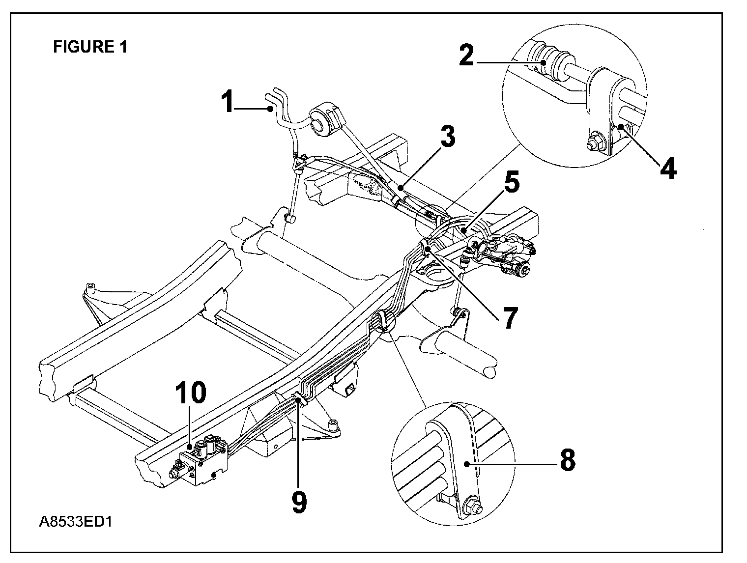 27. Inspect the remaining length of pipe routing over the chassis outrigger (Figure 1), looking for direct contact with the chassis, body or wiring harness.
