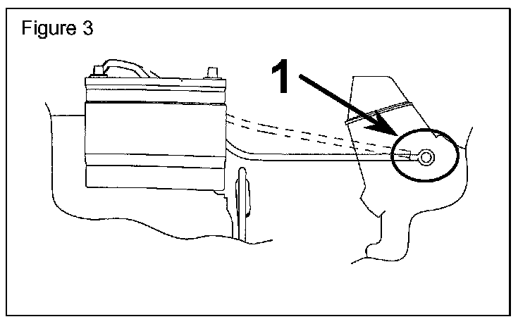9.* Verify that the negative battery cable eyelet is oriented as shown in Figure 3, Ref. 1.