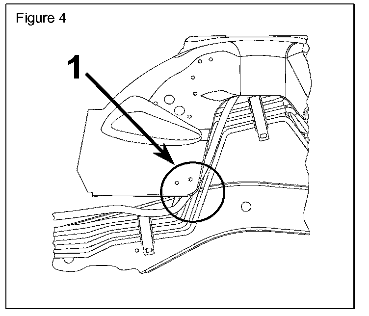 21.* Verify that the main body to chassis wiring harness is not trapped between ACE pipes and the RF inner fender panel (Figure 4, Ref. 1).