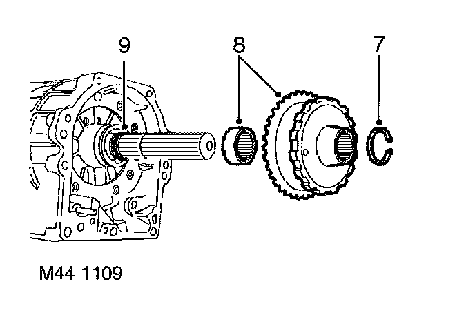 7. Remove and discard circlip from output shaft.