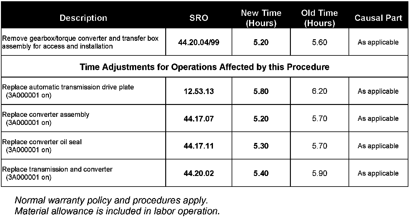 Associated repairs that require the new automatic transmission removal and installation workshop procedures will change accordingly. The relevant Discovery II (LT) GTR Workshop Manual Sections will be updated at the next available opportunity.