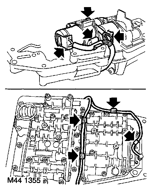 5. Release harness from 5 clips on valve body and remove harness.