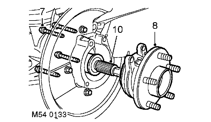 7. Fit wheel hub and align to steering knuckle. Fit wheel hub bolts and tighten to 100 Nm (74 ft. lbs.).