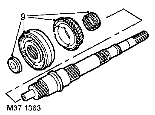 10. Fit 2nd gear bearing, 2nd gear and synchromesh baulk rings onto output shaft.