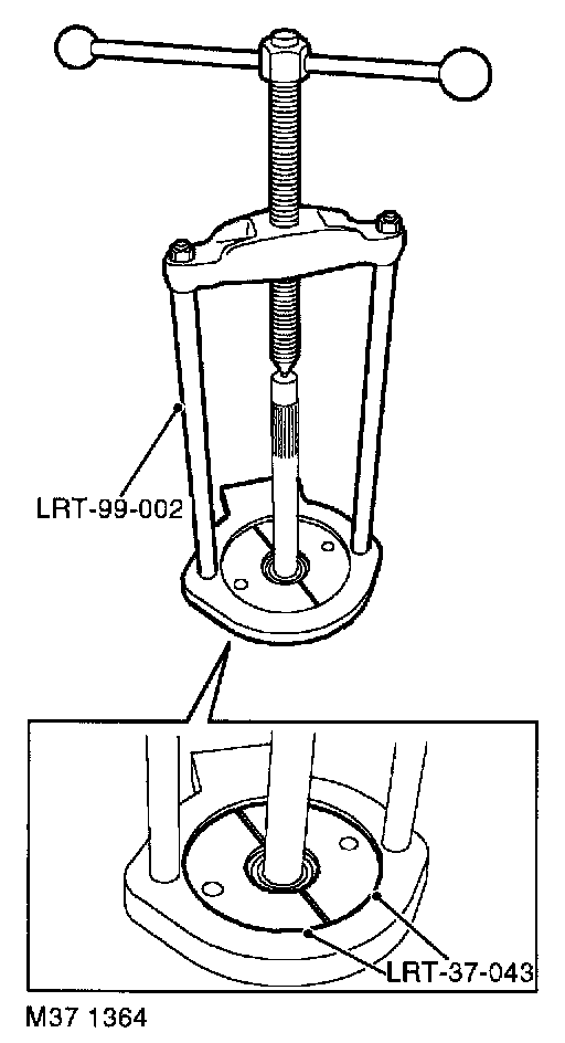 14. Using tool LRT-37-001, LRT-37-044 and LRT-99-002, press taper bearing onto output shaft.