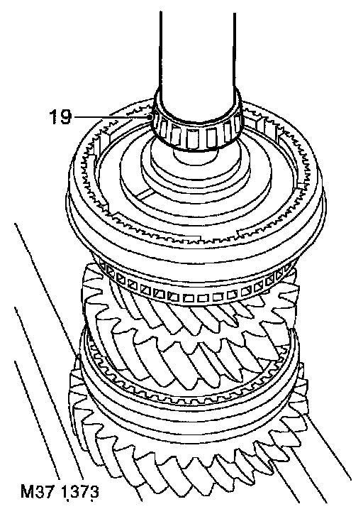 11. Position 1st / 2nd synchronizer hub onto output shaft. Ensure that baulk rings are correctly located in hub.
