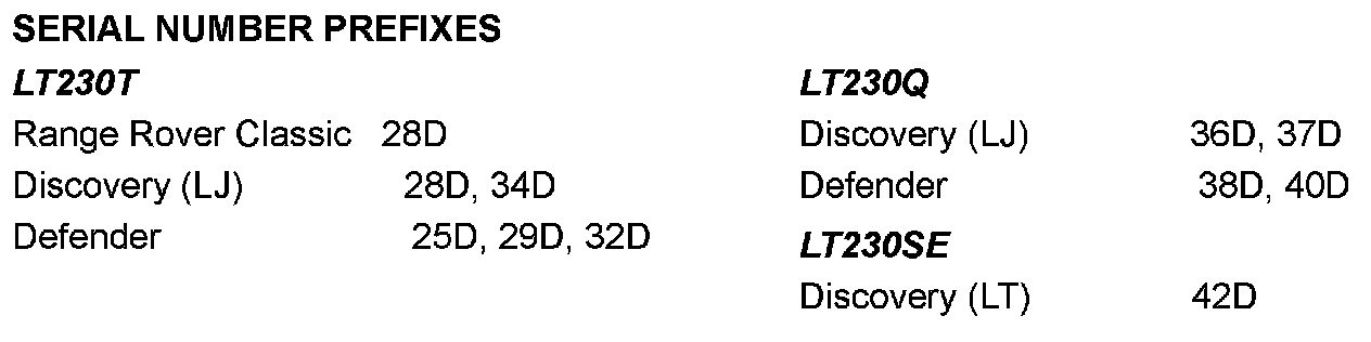 SERIAL NUMBER PREFIXES