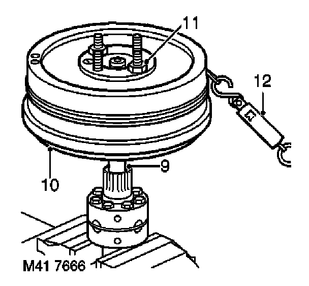 13. Pull on the spring balance and note the load at which the brake drum starts to turn. Used gears should rotate smoothly, while new gears will have a 'notchy' feel as they rotate.