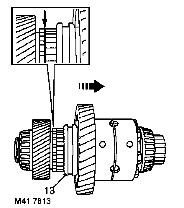 13. Using feeler gauges, determine clearance between high range gear and high/low hub: