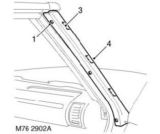 1. Push centres from 3 trim clips securing finisher to 'A' post.
