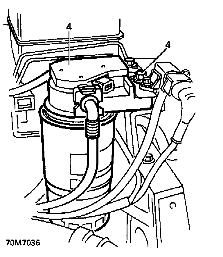 4. LHD Diesel Vehicles Only: Remove 2 bolts securing fuel filter assembly to chassis turret. Move filter aside.