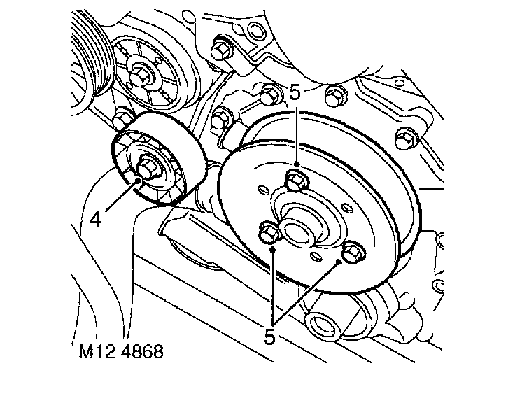 33. Ensure mating faces of water pump pulley and drive flange are clean, fit pulley and tighten bolts to 22 Nm (16 ft. lbs.).