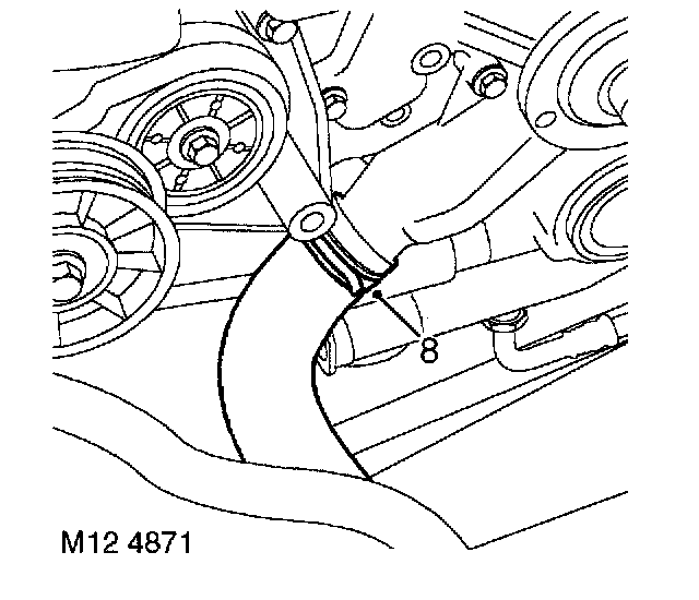 8. Release clip and disconnect coolant hose from water pump.
