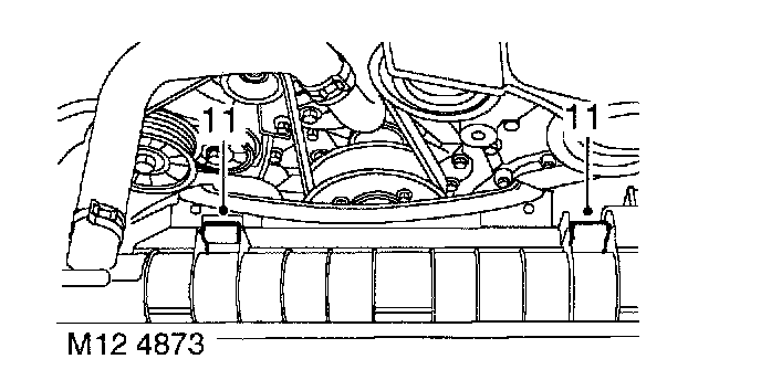 21. Fit new O-rings to oil cooler pipes, connect pipes to front cover and tighten unions to 15 Nm (11 ft. lbs.).