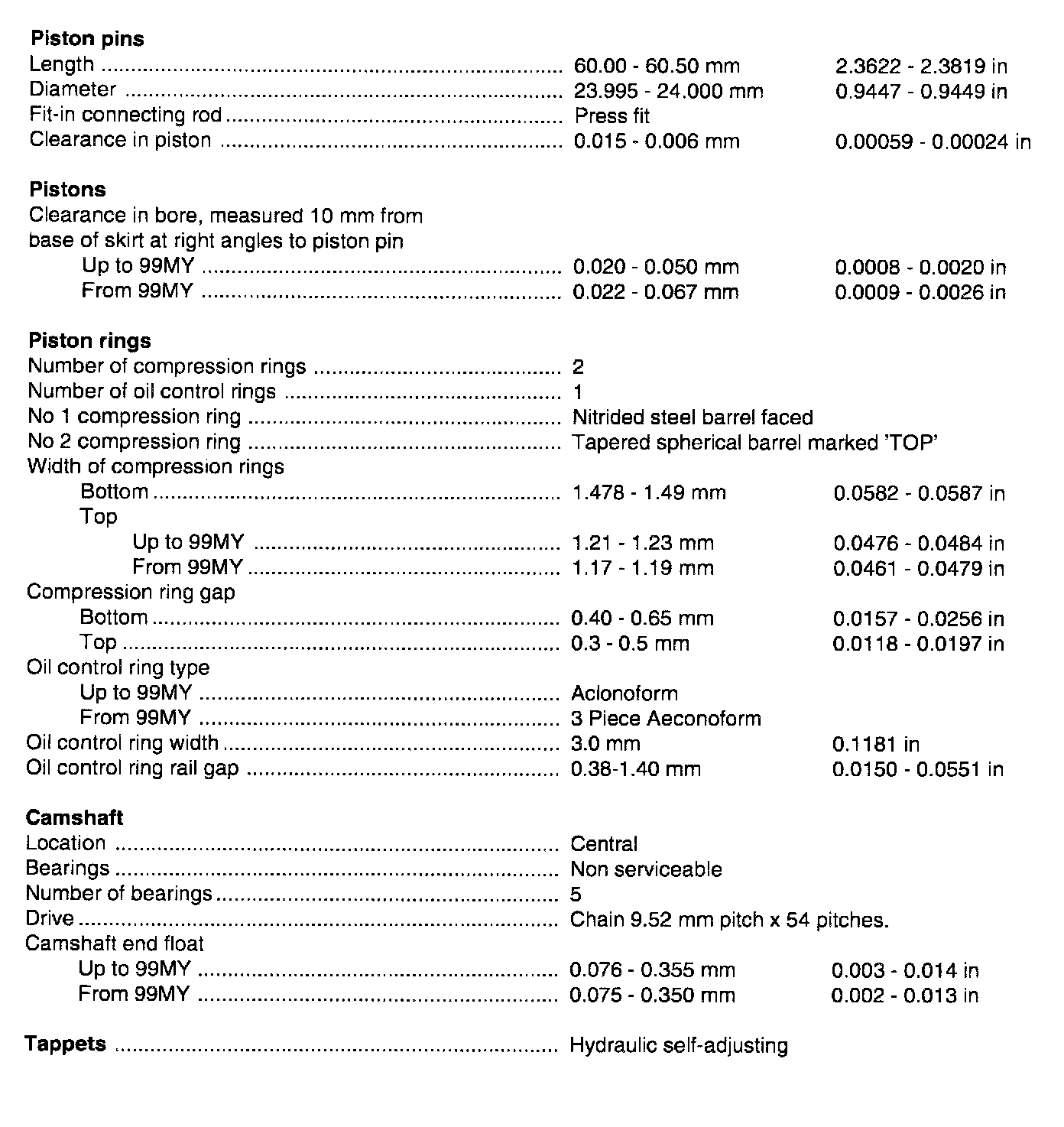 Engine Technical Specifications