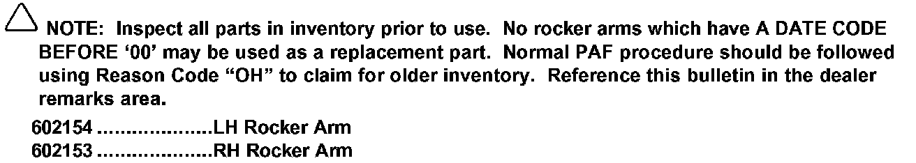 Only rocker arms with date codes '00' may be used to repair valve trains. Use of early production rocker arms may result in a reoccurrence of the problem.