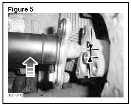 2. Lightly push or pull the propeller shaft to rotate the differential as required to achieve equal distance above and below the centering flange spigot and the locating bush (see Figures 3 & 4).
