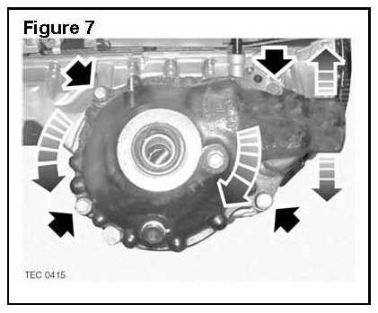 1. Tighten the four differential bolts (Arrowed in Figure 7) sufficiently to secure the differential but allow it to rotate slightly on its axis.