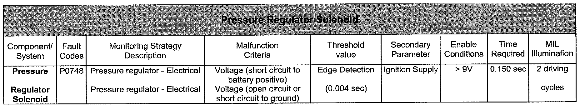 Pressure Regulator Monitoring (S/C to Ground or O/C)