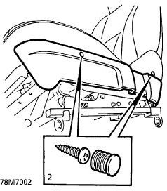2. Remove 2 plugs from seat inner valance retaining screws. Remove 2 screws.