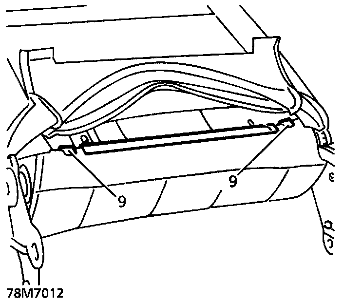 9. Remove 2 clips securing squab cover retainer to squab frame. Release retainer.