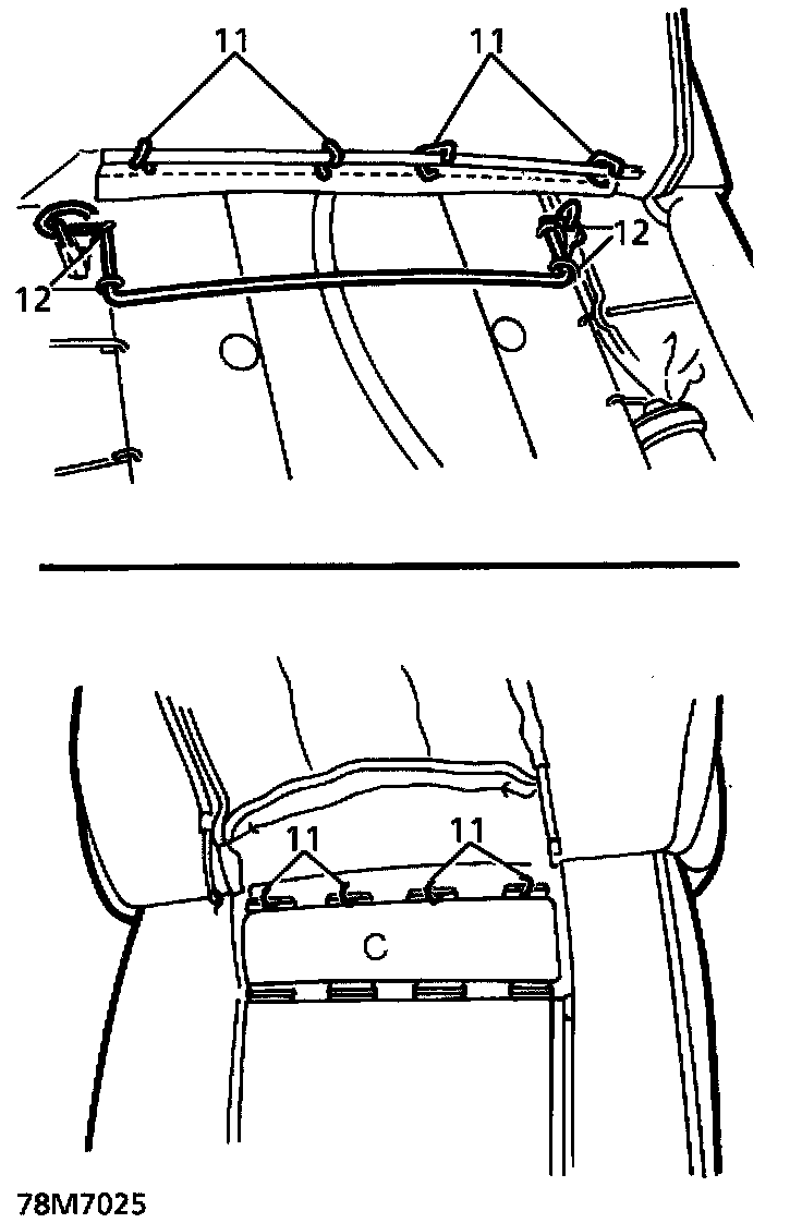 12. Roll cover back further. Remove 4 hog rings securing front of cover.