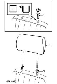 3. Power headrest: Remove 2 finisher caps. Manual headrest: Turn retainers through 90 degrees and remove retainers.