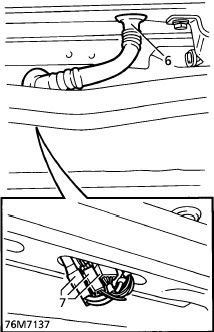 4. Locate rear screen washer non-return valve. Disconnect tailgate feed tube from valve.