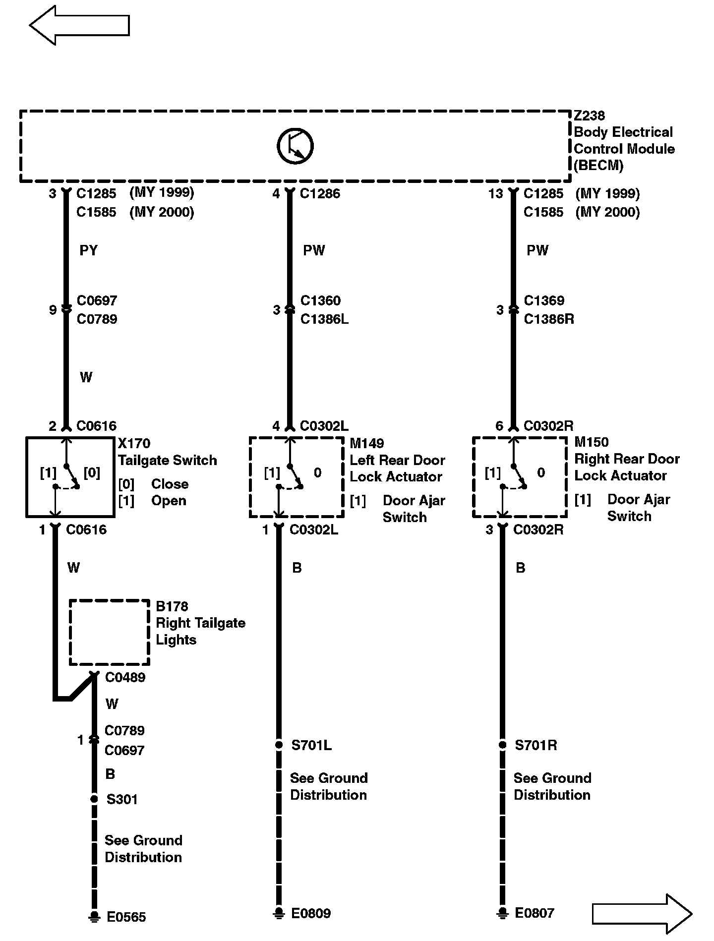 Connector Locations: The location views for connectors depicted within these diagrams can be found via the connector's base number (i.e. C0570) at Vehicle/Locations/Connectors/Master Location Index. Master Location Index