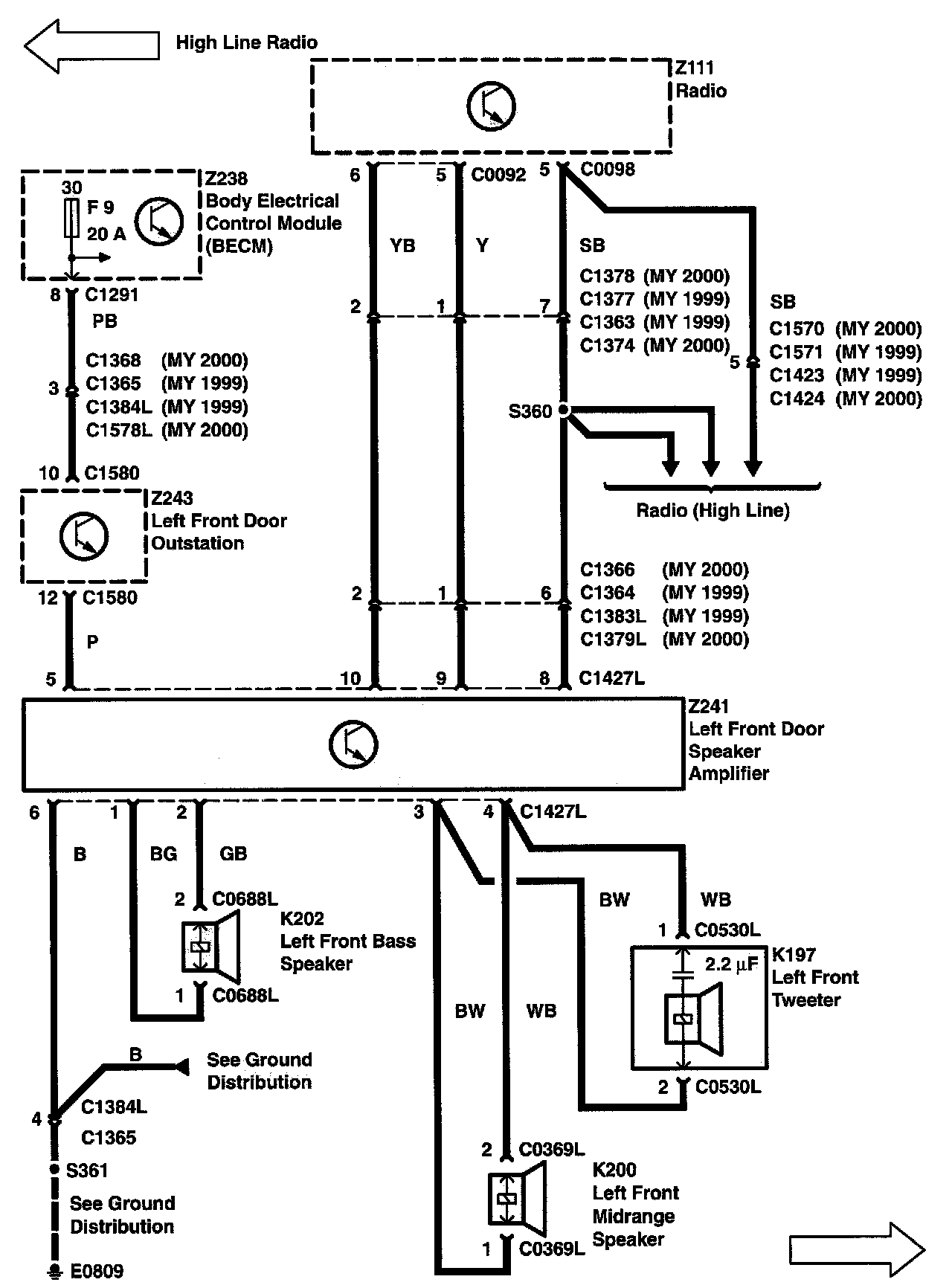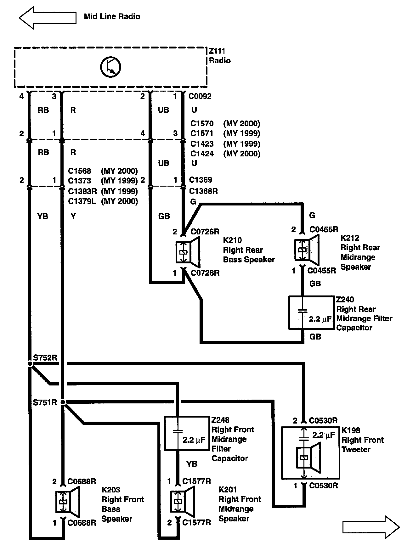 1999 - 2001 Ranger Rover Mid Line Radio Circuit Diagrams