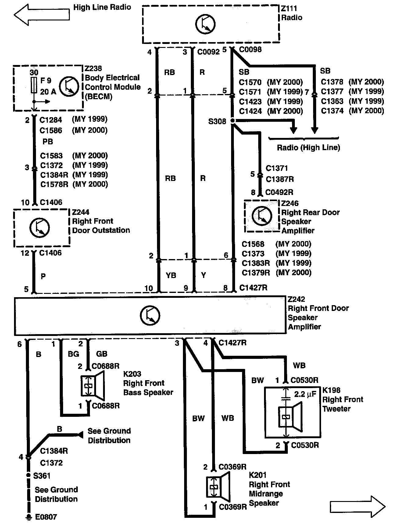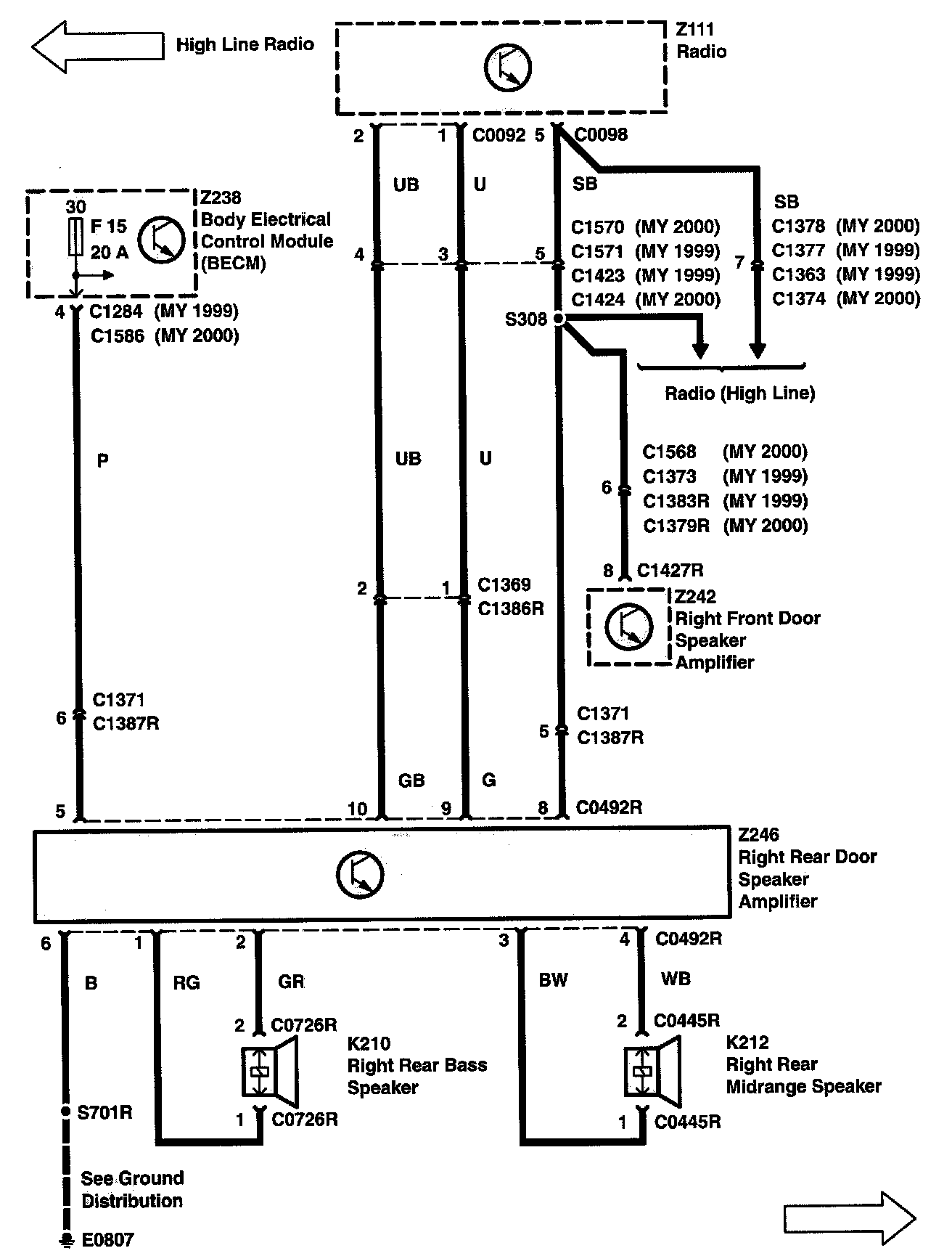 1999 - 2001 Ranger Rover High Line Radio Circuit Diagrams