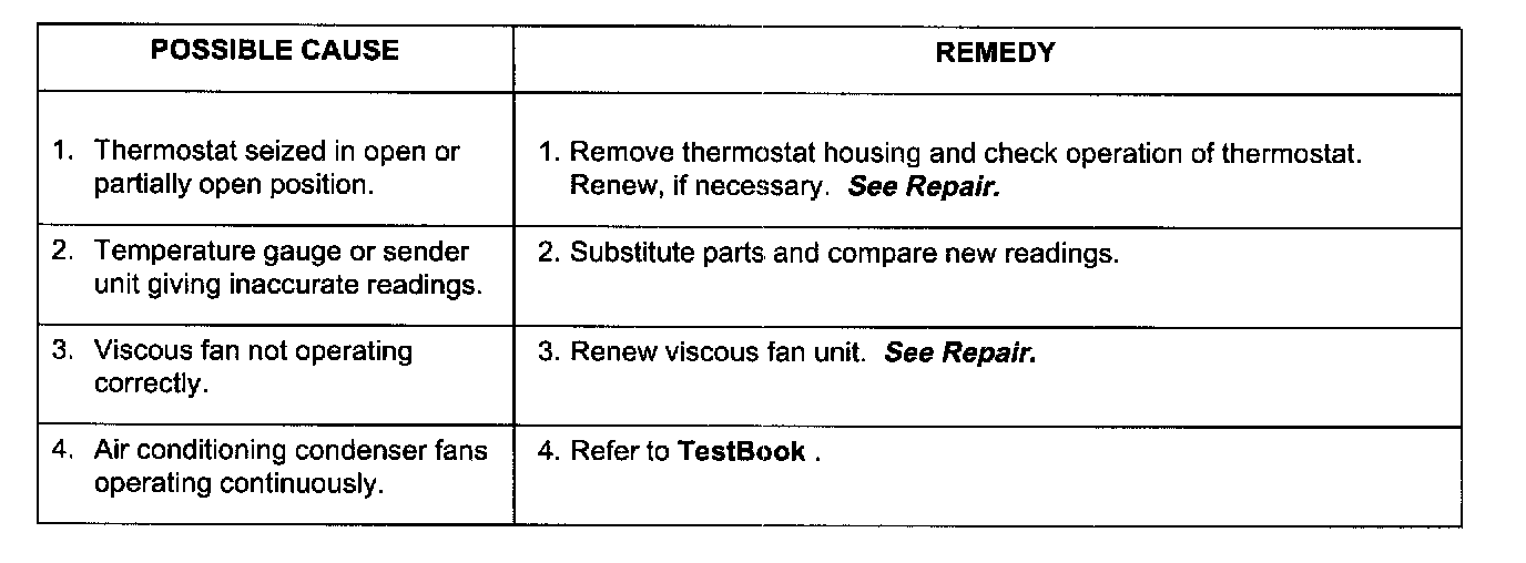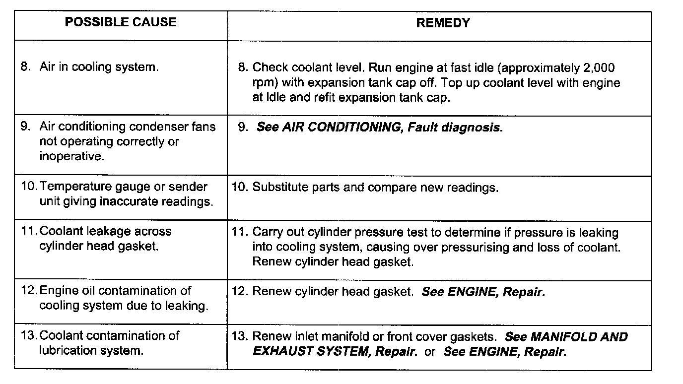 NOTE: Critical warning messages relating to the complete cooling system are displayed on the message centre in the lower section of the instrument pack, should a fault occur in any of the separate systems.