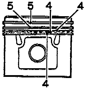 5. Position compression rings with ring gaps on opposite sides of piston between wrist pin and right hand side of piston-viewed from front of piston.