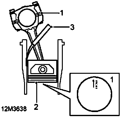 CAUTION: Pistons have a 0.5 mm (0.02 in) offset gudgeon pin which can be identified by an arrow mark on the piston crown. This arrow MUST always point to the front of the engine.