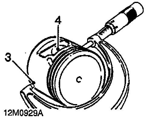 3. Measure and record piston diameter at 90° to wrist pin axis at the bottom of skirt. The piston must be 0.030 mm smaller than cylinder bore.