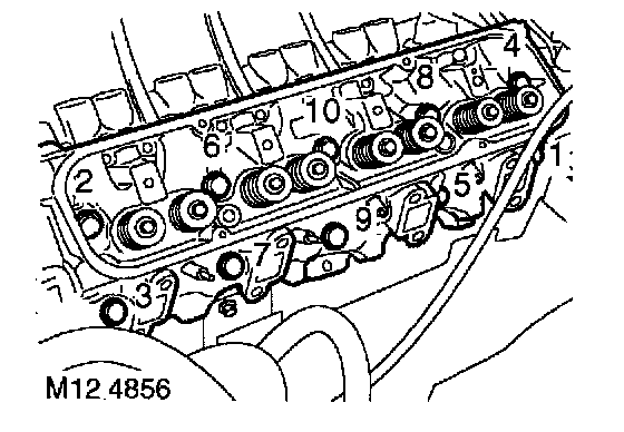 7. In the sequence shown remove 10 bolts securing the cylinder head to block.