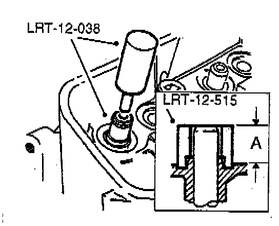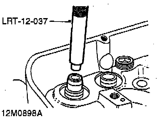 4. Install tool No. LRT-12-515, or equivalent, over valve guide and continue to press guide into cylinder head until tool No. LRT-12-038, or equivalent, contacts tool No. LRT-12-515, or equivalent, remove tool.