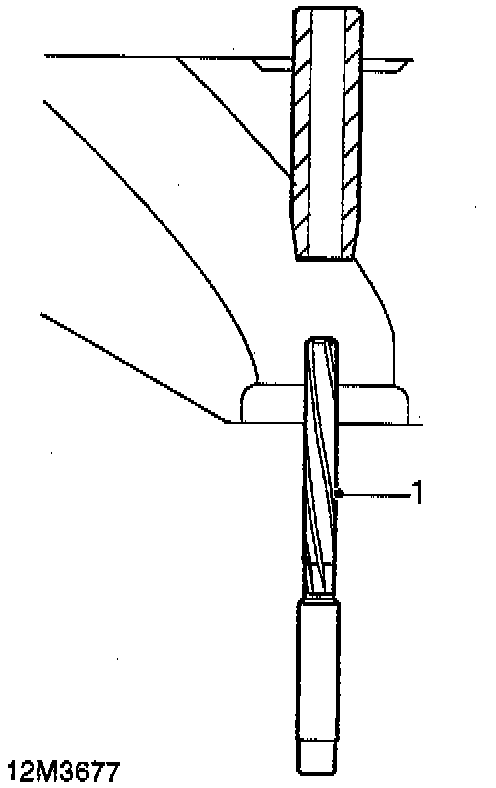 1. Remove carbon deposits from exhaust valve guides using an 8.70 mm diameter reamer inserted from combustion face side of cylinder head.