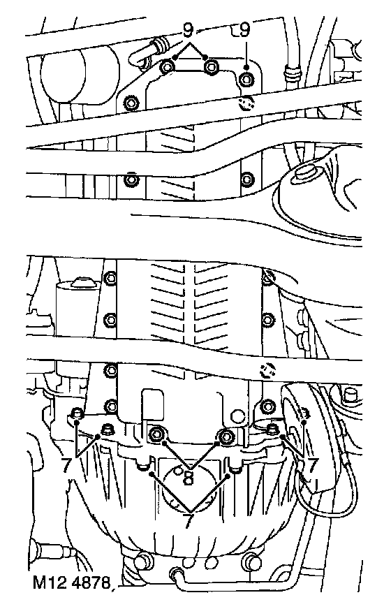 8. Remove 2 bolts in sump recess.