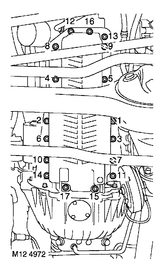 16. Fit sump and tighten sump bolts and nuts in sequence illustrated to 23 Nm (17 ft. lbs.).