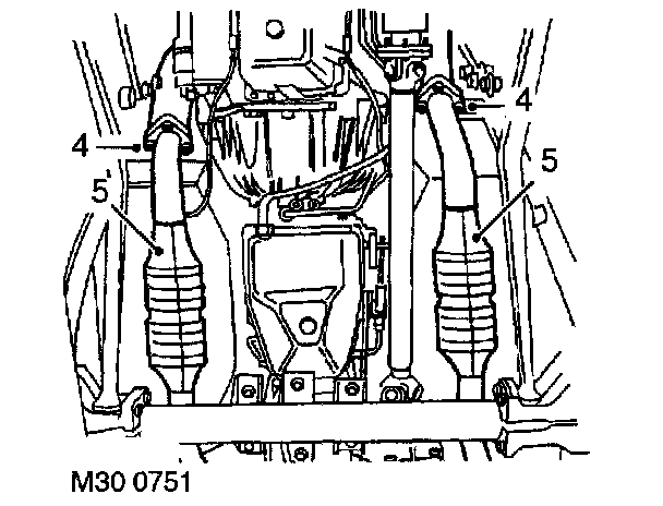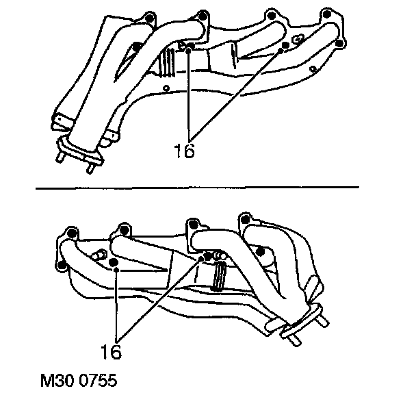 28. Fit new gasket to front pipe. Position pipe to exhaust manifold. Secure with nuts Tighten to 50 Nm (37 ft. lbs.).