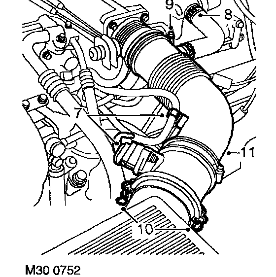 9. Loosen clip and disconnect air intake hose from throttle body.