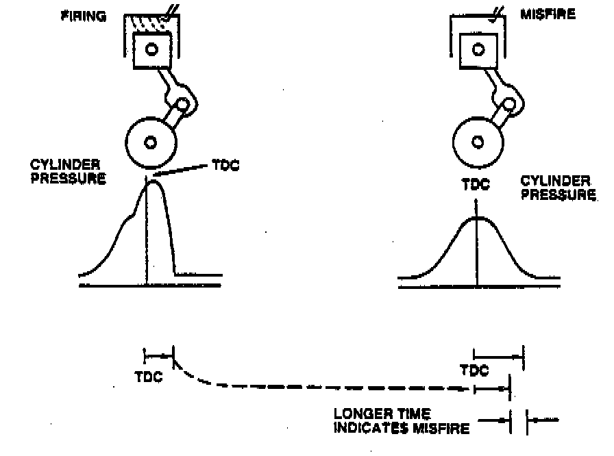 The ECM detects engine misfire by measuring the contribution each cylinder makes to engine performance. This is calculated from measurements of crankshaft acceleration for each cylinder provided by the crankshaft position sensor.