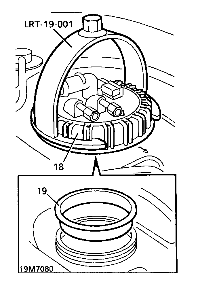 18. Remove tank unit retaining ring using LRT-19-001. Remove assembly from tank.