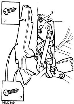 7. Remove 3 screws securing squab hinge cover. Remove cover.