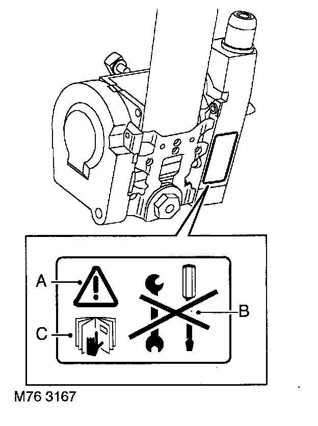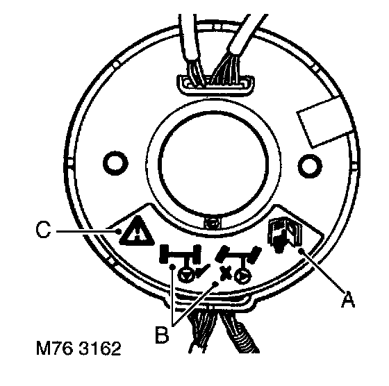 B - Warning, the use of gas generators is permitted only for occupant restraint systems in vehicles fitted with airbags. Not repairable. Handling is permitted only by authorized personnel. Do not use any live electrical test equipment. Do not open, remove or install in another vehicle. Risk of malfunction and personal injury. Upon deployment, an airbag unit which is not properly mounted may become a dangerous projectile. Refer to Repair Manual for further instructions.