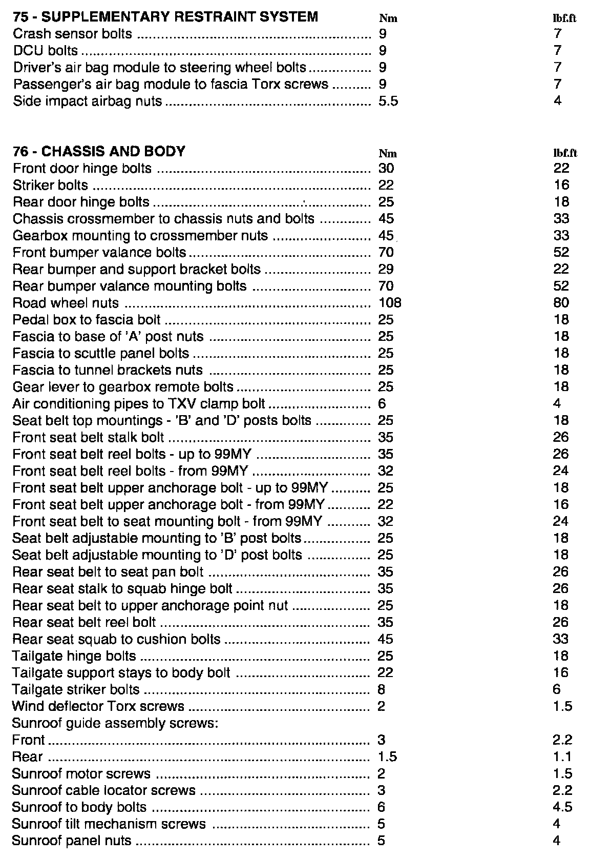 Torque Specifications