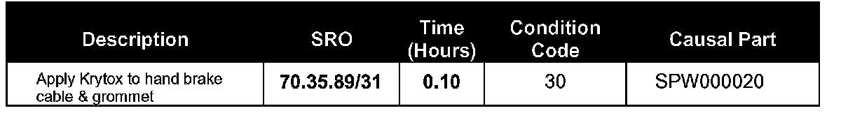 The customer may complain of a squeaking noise heard during suspension articulation in dry weather as when traversing a speed bump. The noise may appear to be originating from a range of locations (the rear suspension, hand brake lever or rear of the center console) in the middle of the vehicle. The handbrake cable passes through a support bracket grommet under the vehicle. During suspension articulation contact between the cable outer sleeve and grommet can generate a squeaking noise, which can be heard inside the vehicle.